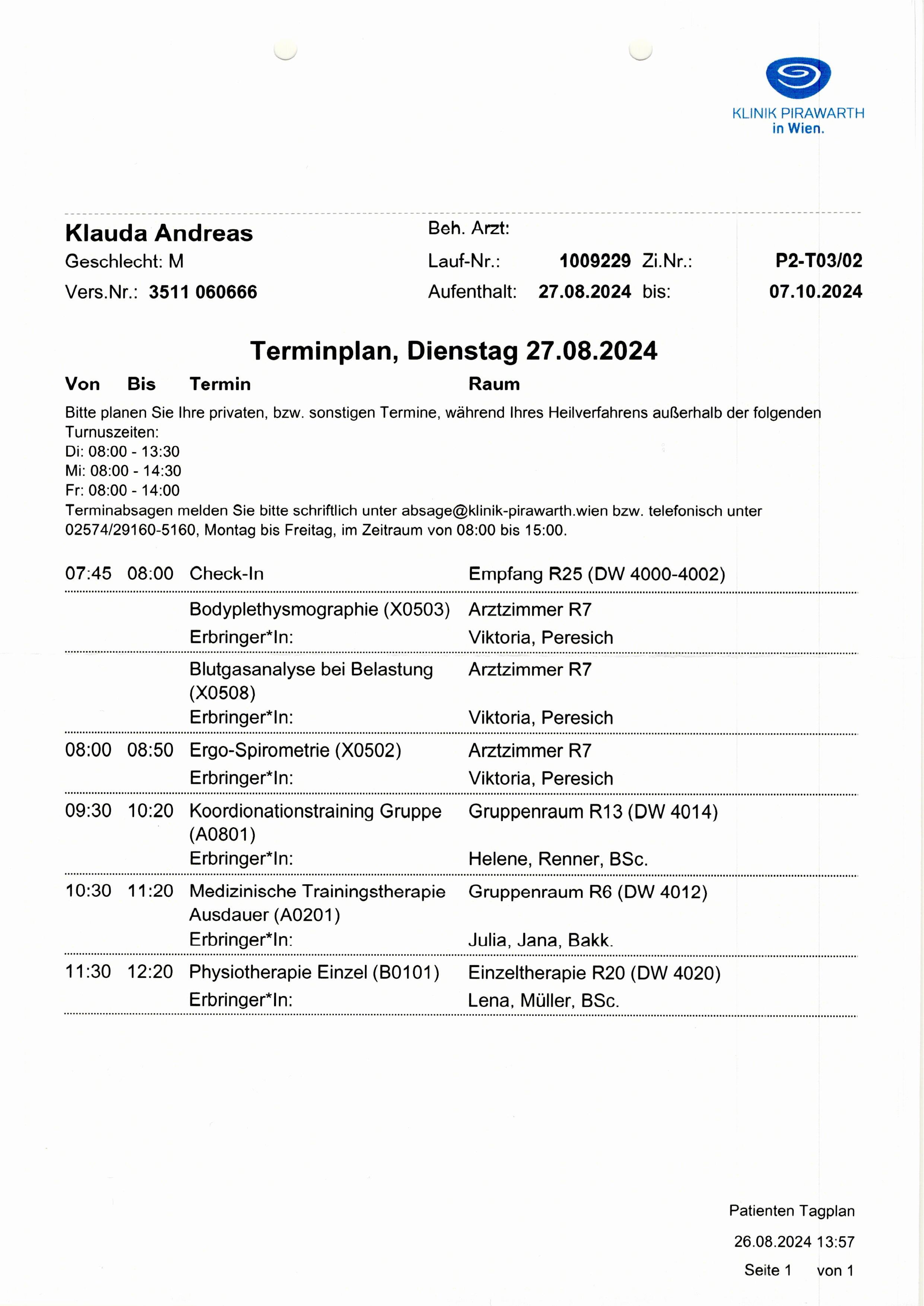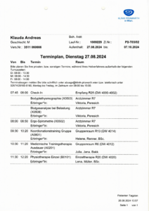 Ich habe den Therapieplan für meine gesamte Reha bekommen.